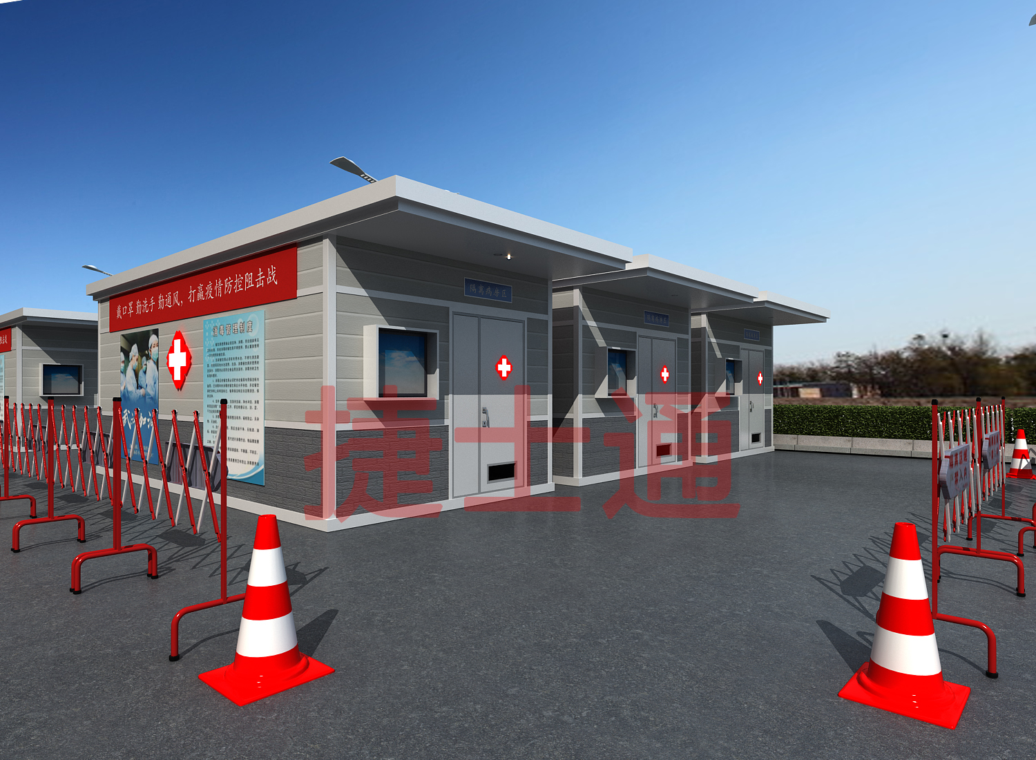 每个医院都有自己的户外核酸采样房屋与隔离房屋,一般的核酸采样房屋都是采用全封闭的形式,只是手有医用橡皮手套伸出,隔离用房一般都是设置有室内卫生间和全方位装修,以及通风系统。