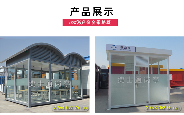 天津捷士通岗亭厂家直销生产,各类岗亭现货供应,包括收费岗亭,保安岗亭,吸烟亭等等。
