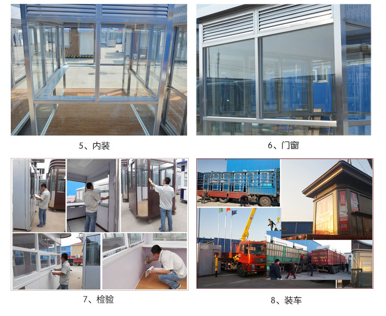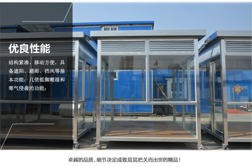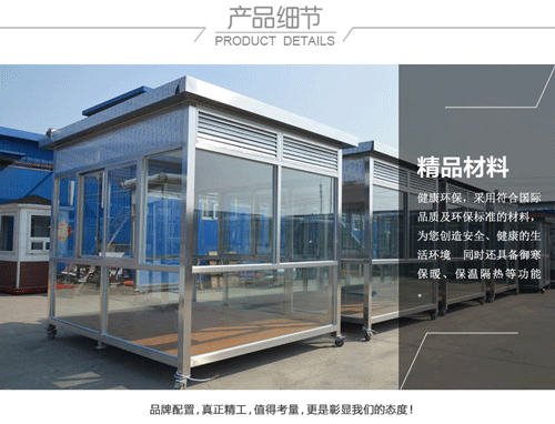对玻璃进行贴膜或者钢化处理。岗亭吊顶为pvc挂板,岗亭可安装插座,供使用人员手机充电,岗亭一般预设排风口或者安装排风扇
